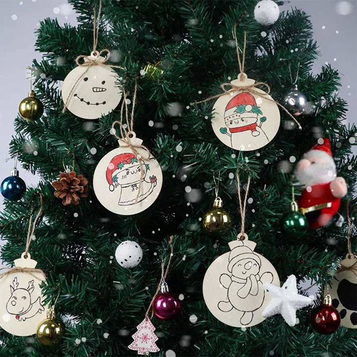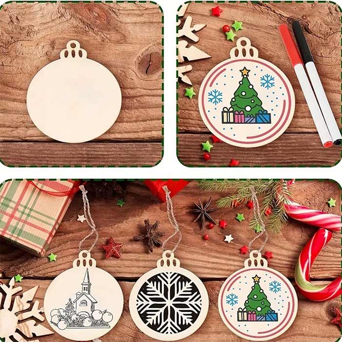 Po lesenih okraskih lahko rišete s flomastri, akrilnimi barvami itd.