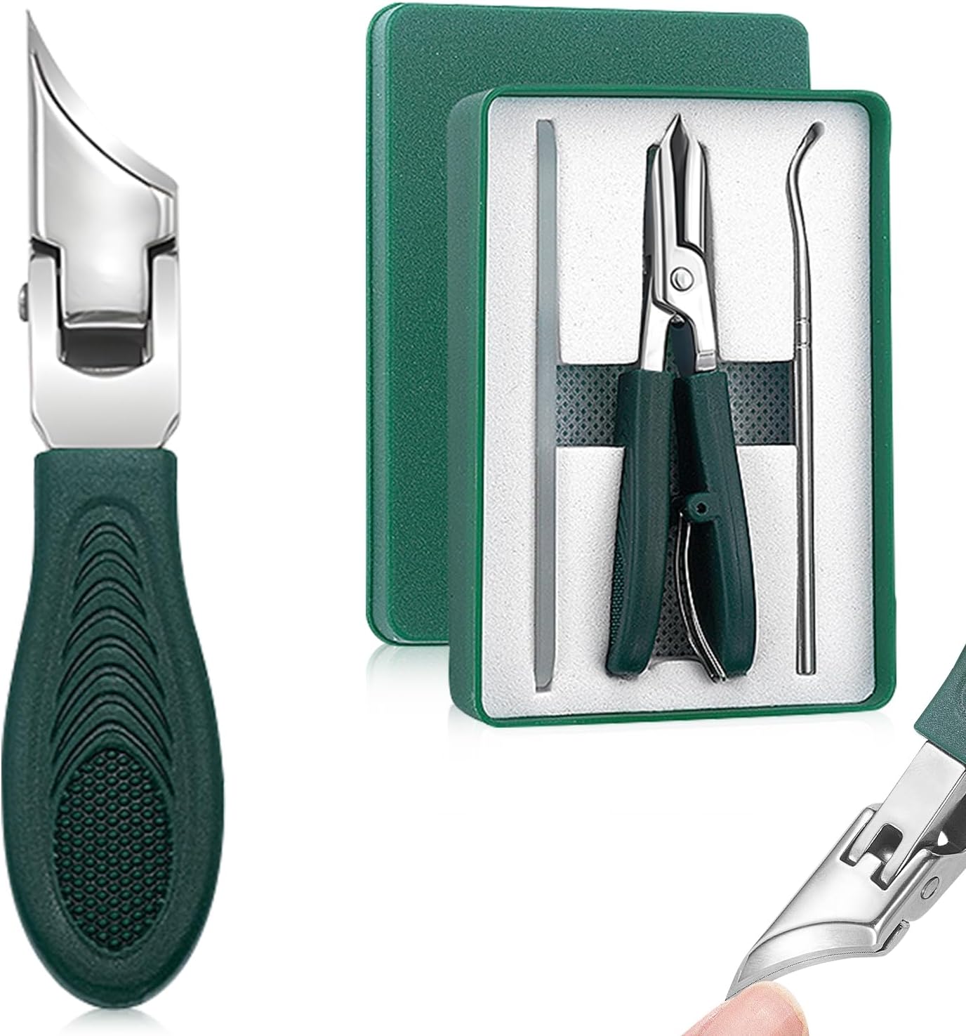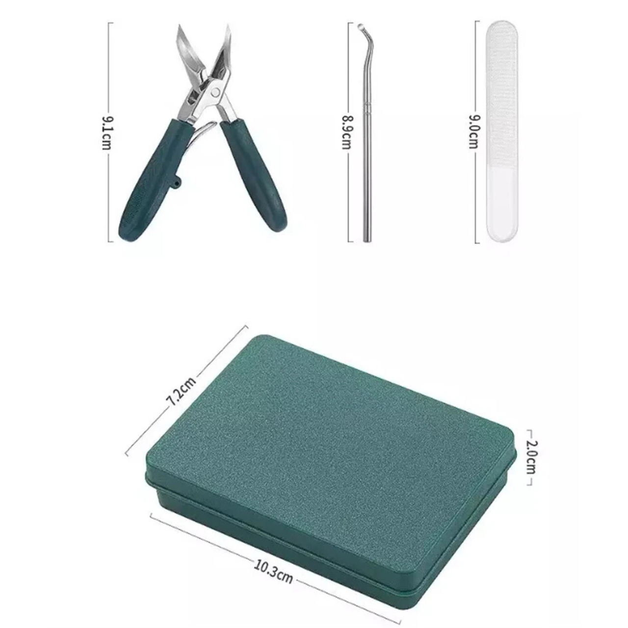 Profesionalni komplet za urejanje zahtevnih, vraščenih in zadebeljenih nohtov – hitra, natančna in varna rešitev za popolno nego doma. Vključuje klešče z edinstveno zasnovo orlovega kljuna, pilico in potiskač obnohtne kožice. Sledi naravni krivulji nohta za hitre, natančne in varne reze