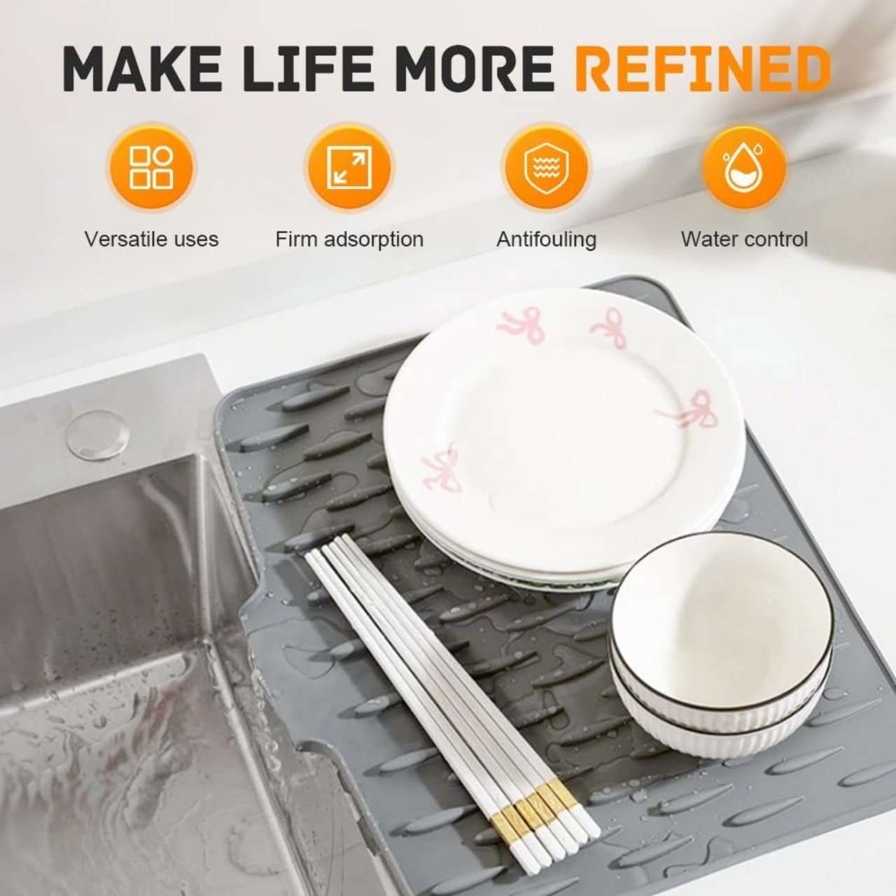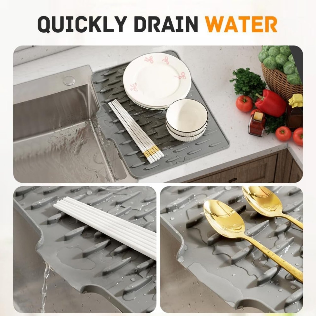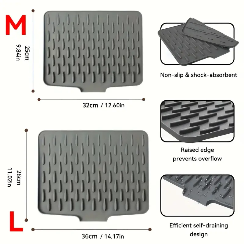 💧 Hitro odtekanje vode – nagibana zasnova 🔥 Odporna na toploto 🧽 Nedrseča površina za stabilnost ✨ Enostavno čiščenje pod tekočo vodo 🍴 Primerna za kuhinjo in kopalnico