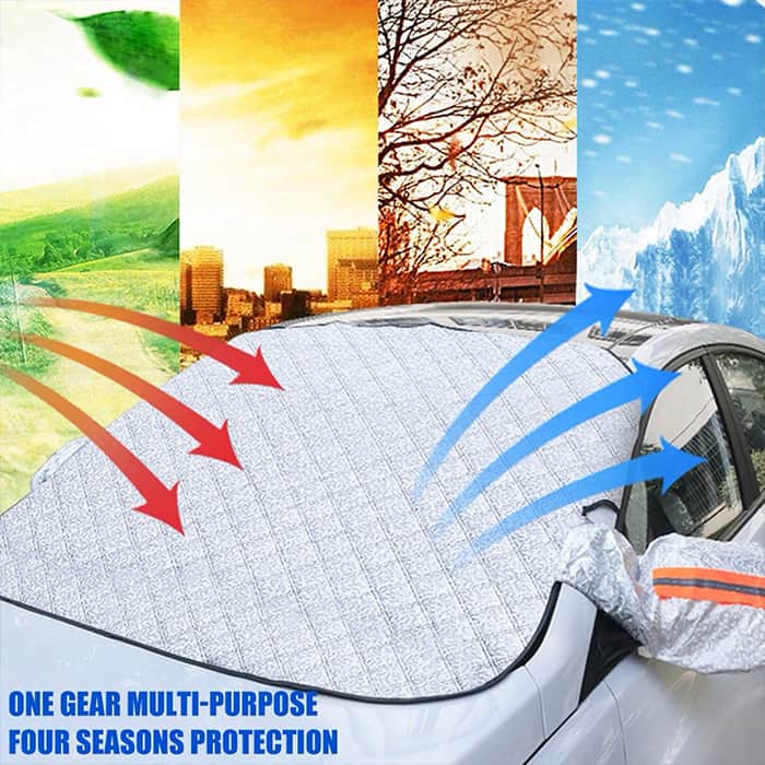 Zaščitno prevleko boste namestili v trenutku na večino avtomobilov! Pozimi bo prihranila zamudno praskanje ledu, poleti pa prepreči umazano steklo polno listja.