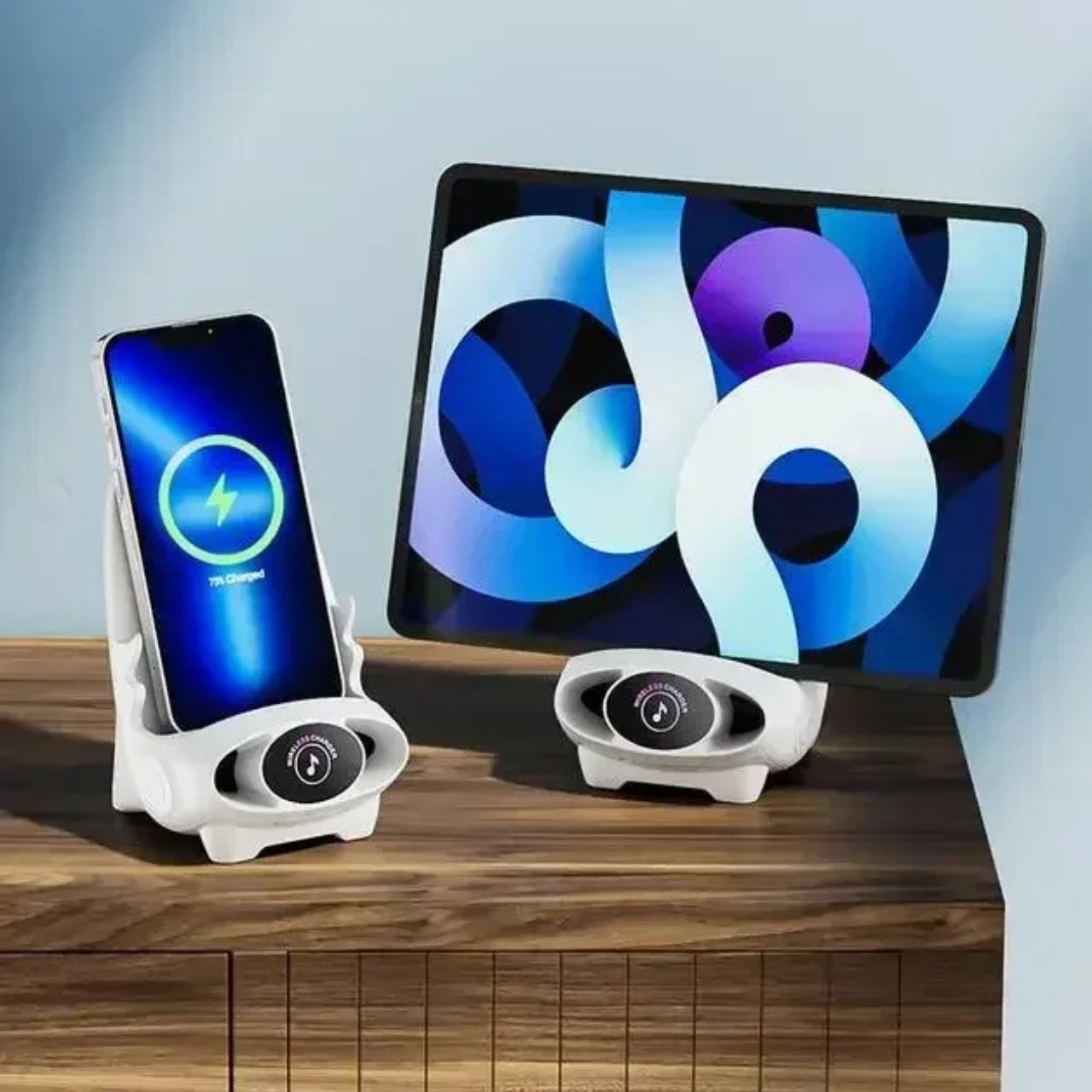 Brezžični polnilec omogoča hitro polnjenje, hkrati pa služi kot eleganten in praktičen nosilec za vaš telefon – doma, v pisarni ali na poti.