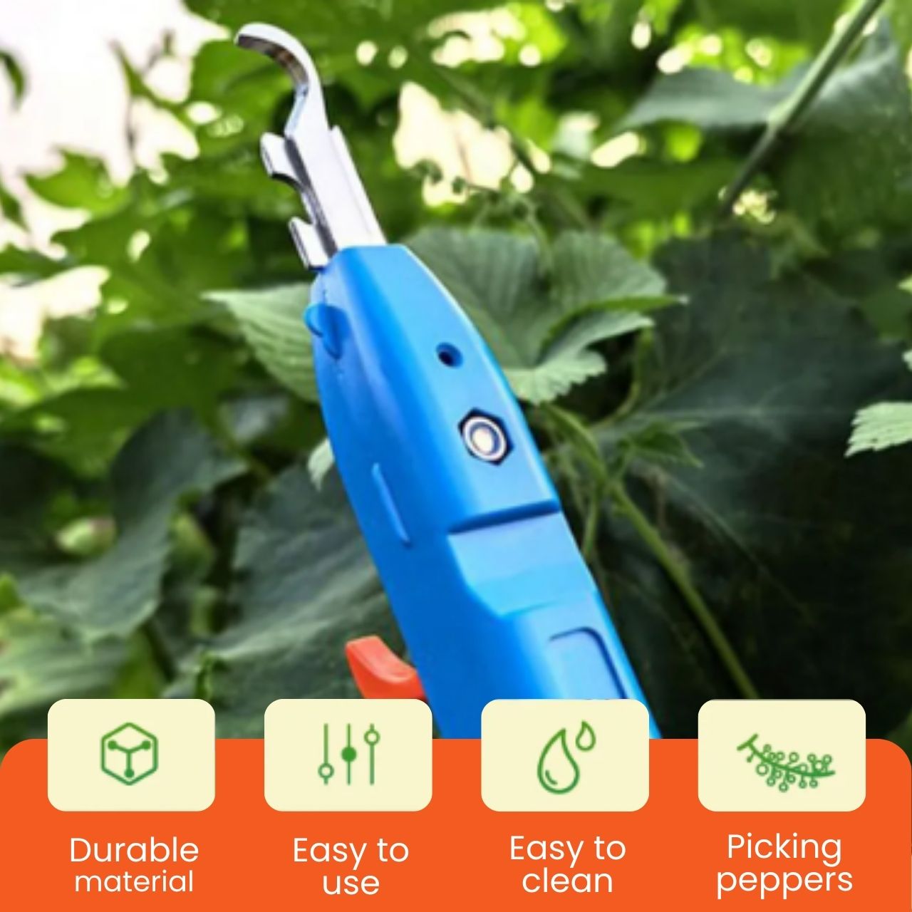 Škarje so odlična izbira za obiranje sadja in zelenjave, kjer je potrebno prerezati peclje, kot so grozdje, paprika, paradižnik in podobni pridelki. Omogočajo čist rez brez trganja rastlin.