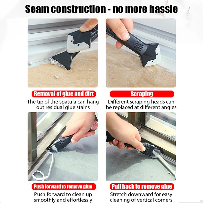 Večnamenski pripomoček SiliconRemover se zelo dobro obnese pri nanašanju, glajenju in odstranjevanju silikonskih mas v kopalnici, kuhinji, koritu, itd. U kompletu boste prejeli nastavke petih različnih oblik, za različne kote in globine fug. Nastavki so izdelani iz posebnega materiala, na katerega se silikon ne lepi.